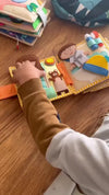 Yes, the quiet books can be personalized with the child's name. We can embroider or plot the child's name onto the quiet book's closure strap, depending on your preference. Only names with a maximum of seven letters are possible for embroidery. The personalization feature can be found on the individual product pages. If the feature isn't currently available, please send us an email with the desired name.